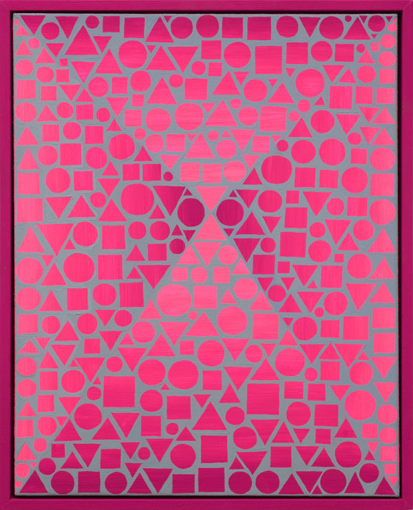 The work of Nicholas Pittman is optical and uniform, with the artist’s hand not immediately evident within each painting. In search of a psychedelia that is neither illustrative, nostalgic, nor related to the culture of drugs, an index of rudimentary geometric shapes are transliterated into canvases that ‘do something instead of try to say something.’